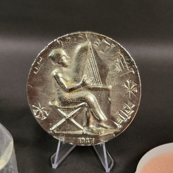 This is an absolutely fantastic item. This is the Silver version of the 1987 Babylon Table Medal produced under the reign of Saddam Hussein. These are somewhat rare and extremely rare with the original packaging. Saddam believed he was the modern reincarnation of the ancient Babylonian King Nebuchadnezzar.